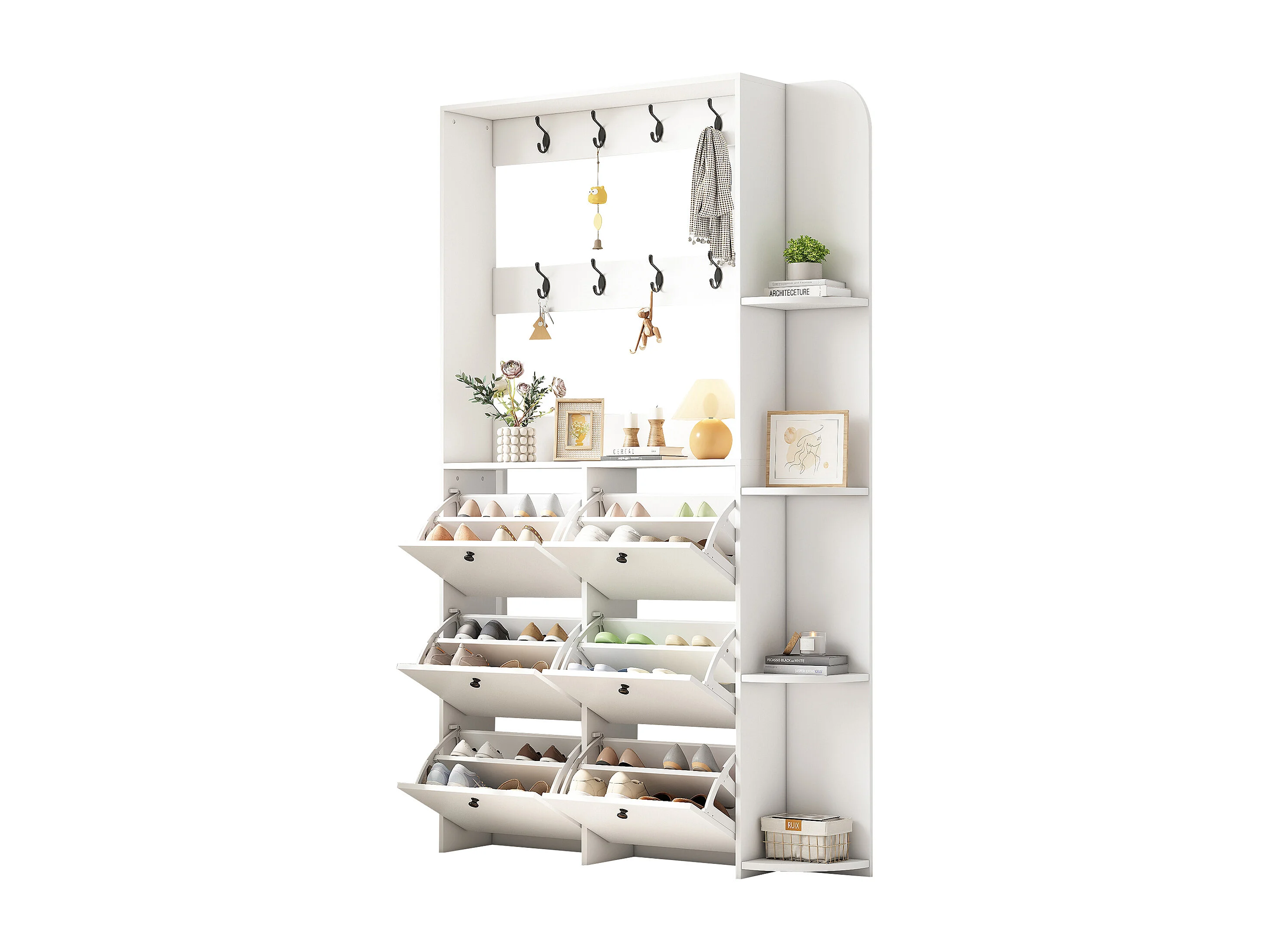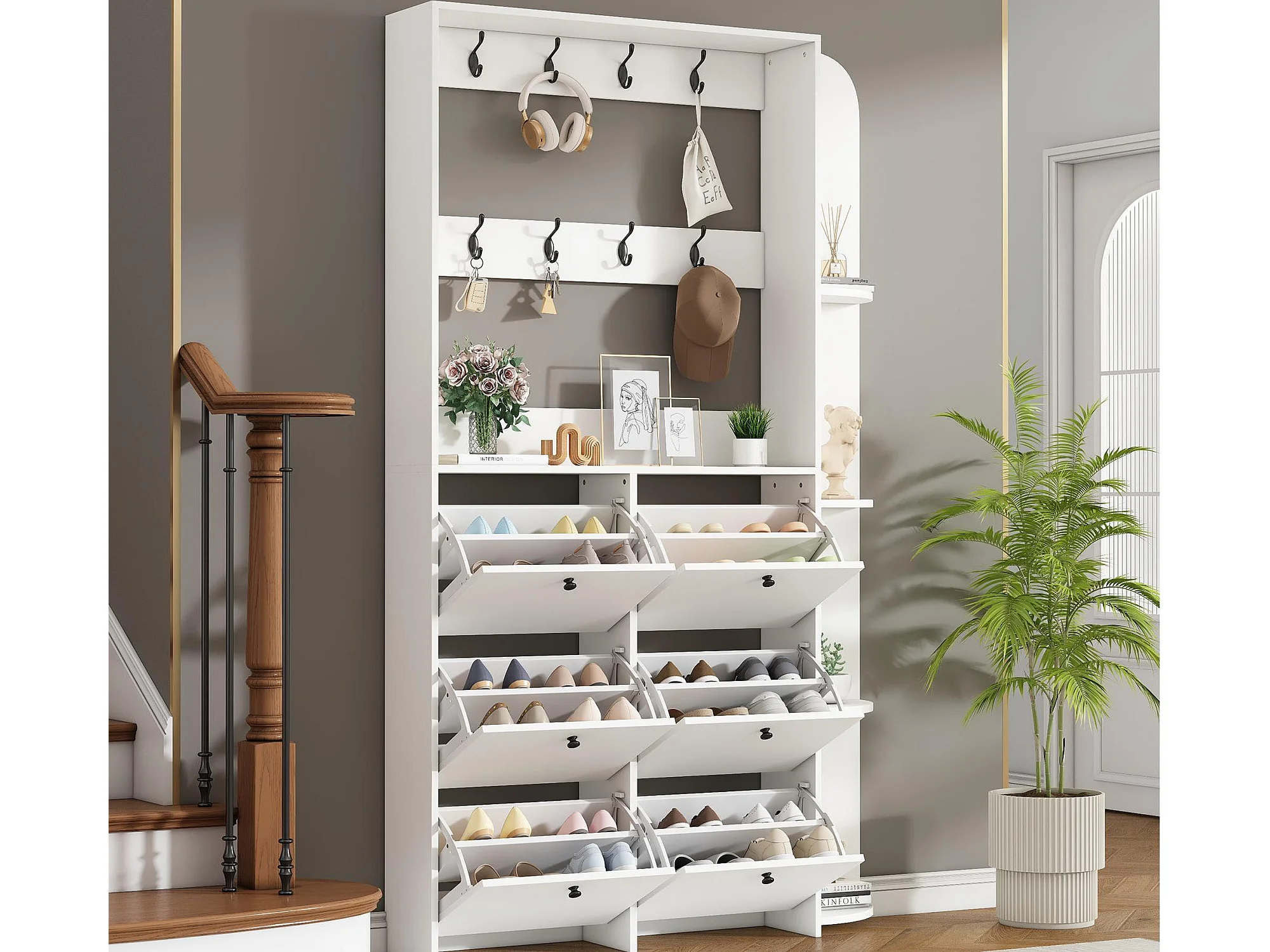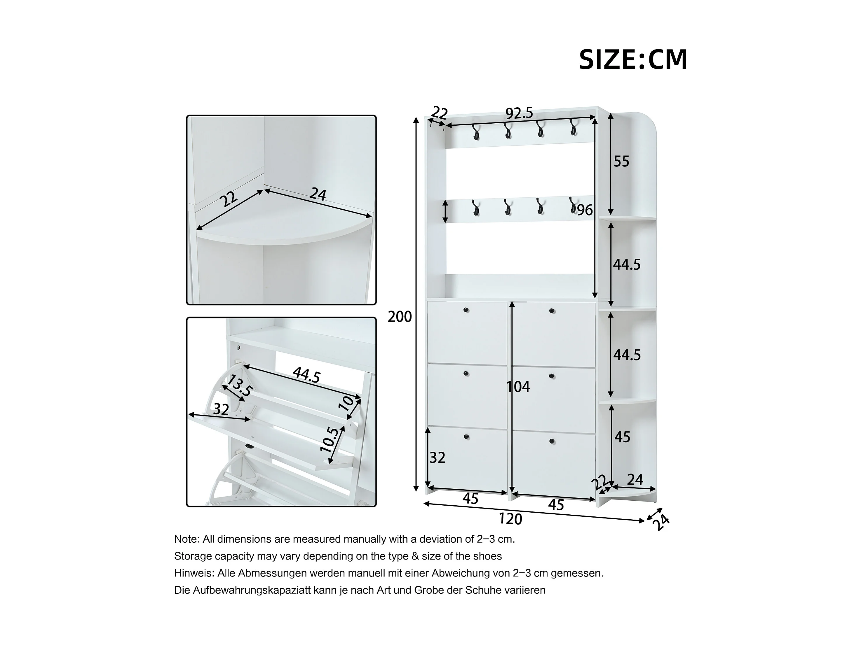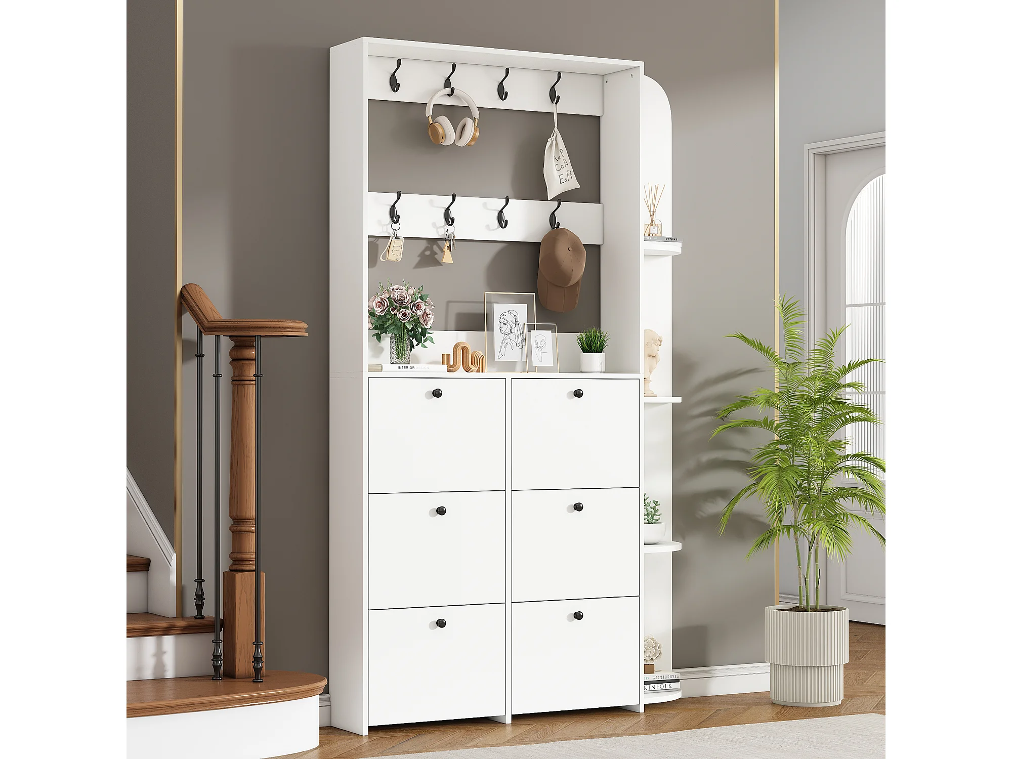 Zestaw szatni wejściowej 120x24x200 cm - z szafą na buty - 8 haczyków - Biały