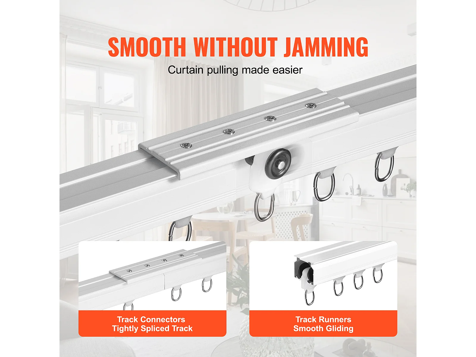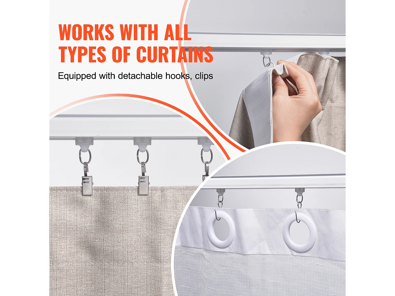 Zestaw Szyn SucceBuy 270cm z Hakami, Biały, System Biegowy do Zasłon, Montaż Sufitowy/Ścienny do Salonu, Sypialni