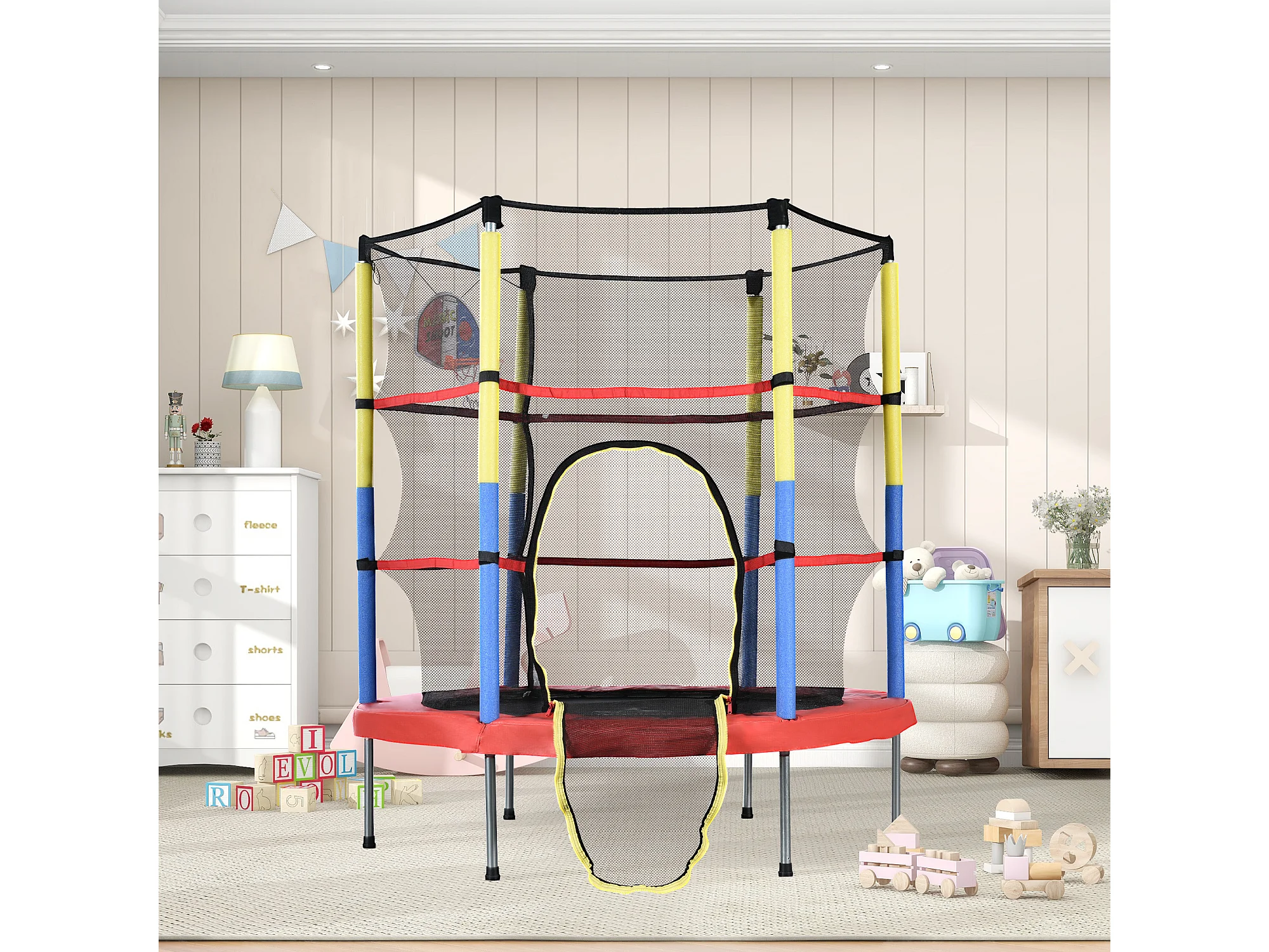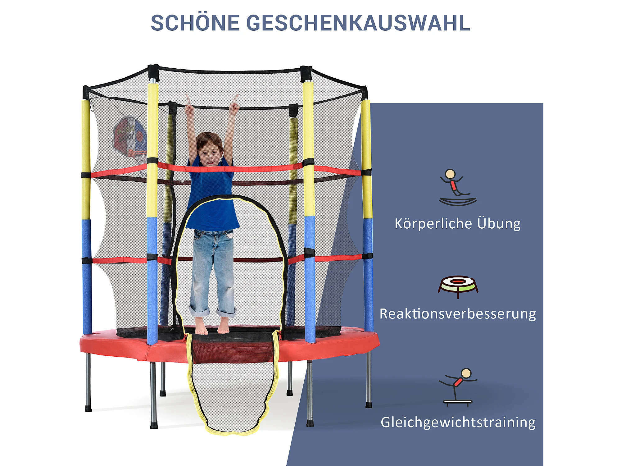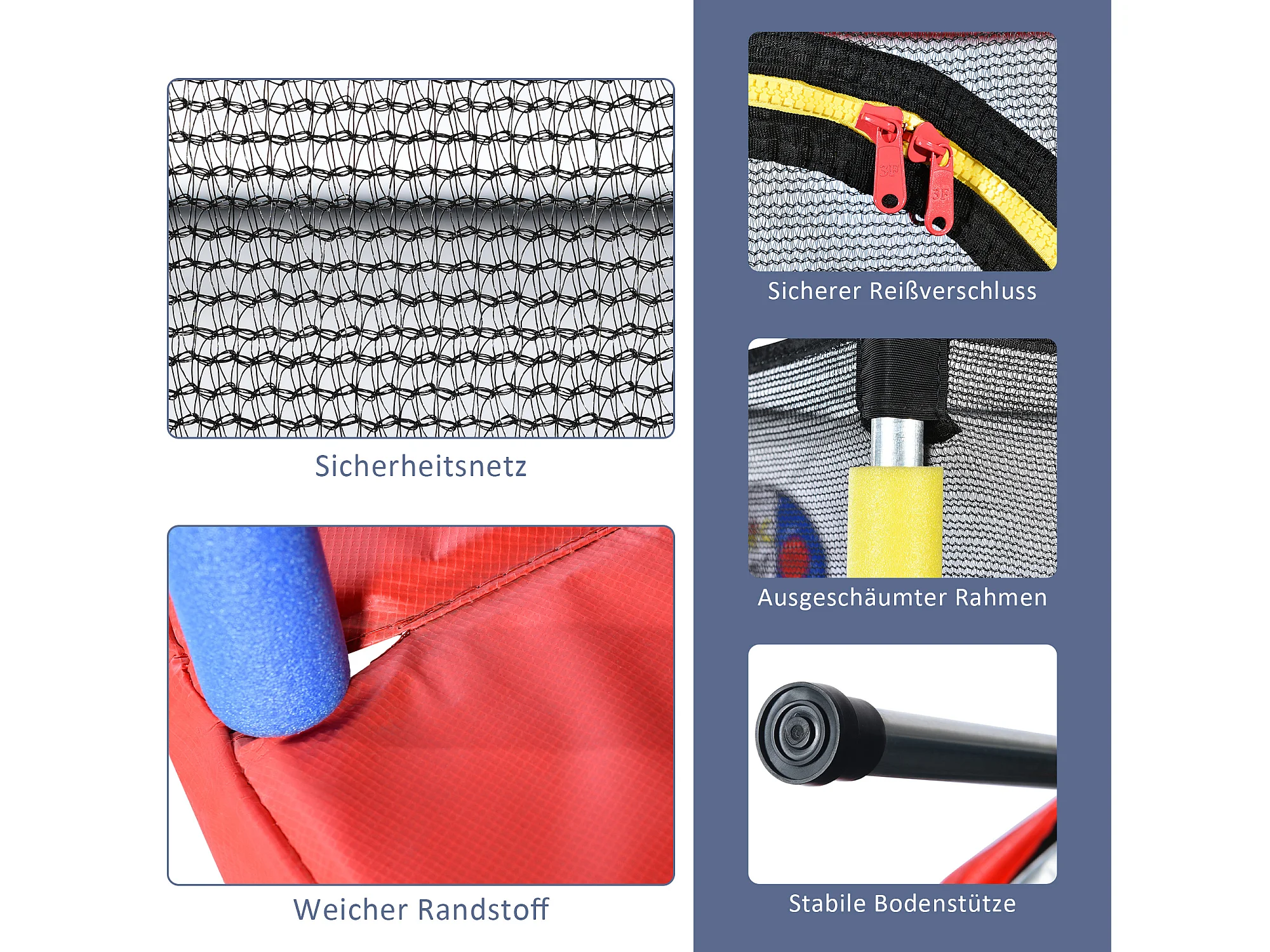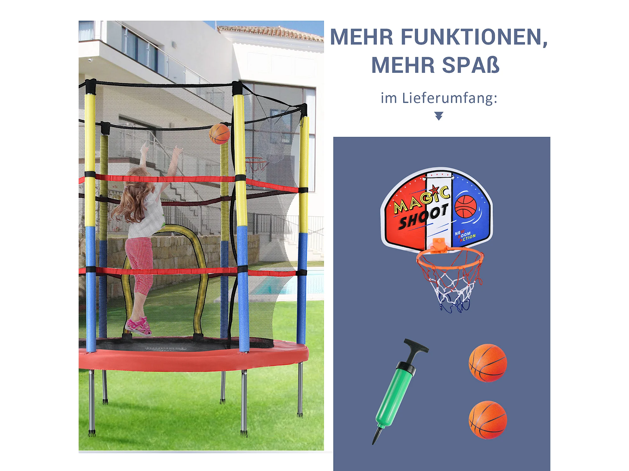 Zestaw trampolin okrągłych dla dzieci - 140 x 140 x 164 - wykonany z u stalowego - z koszem do koszykówki - czerwony