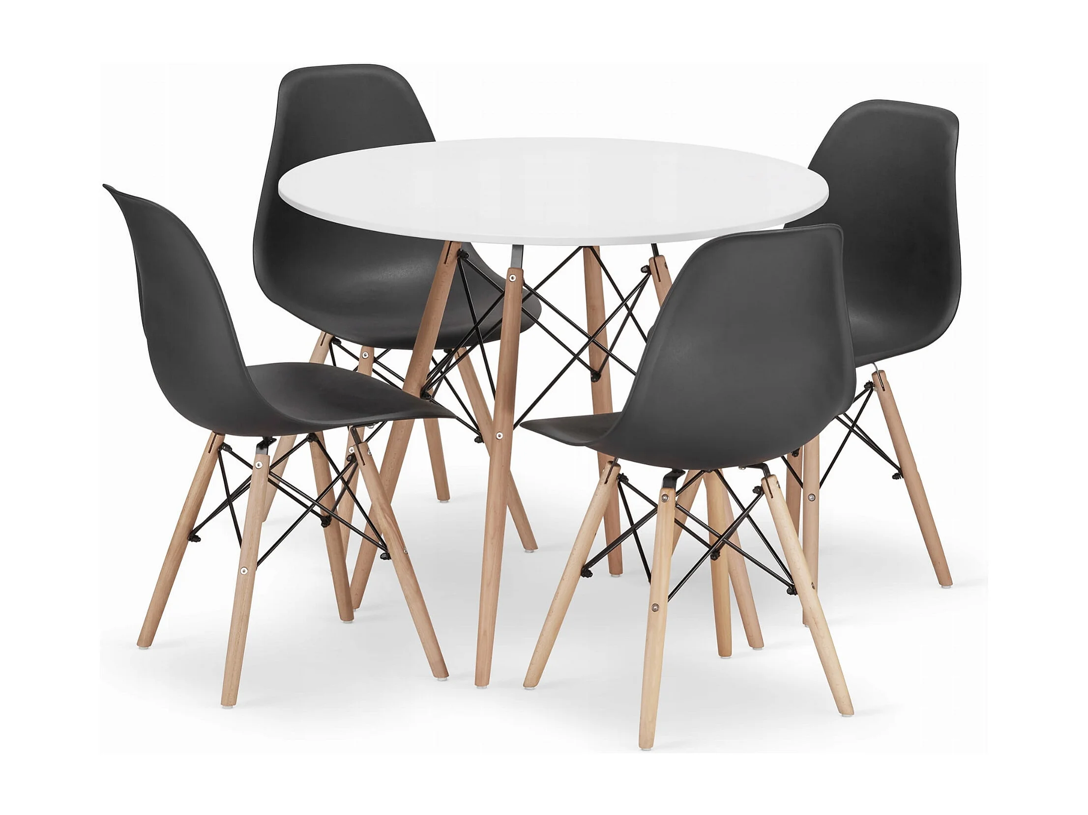 Zestaw Valora KOVA 90 Round Table Set White + 4 krzesła Osaka Black