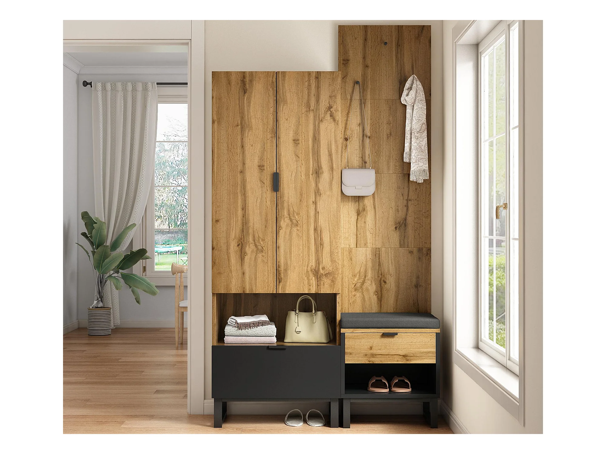 Zestaw Vestiaire - z siedziskiem na buty i 2 szufladami - Naturalny