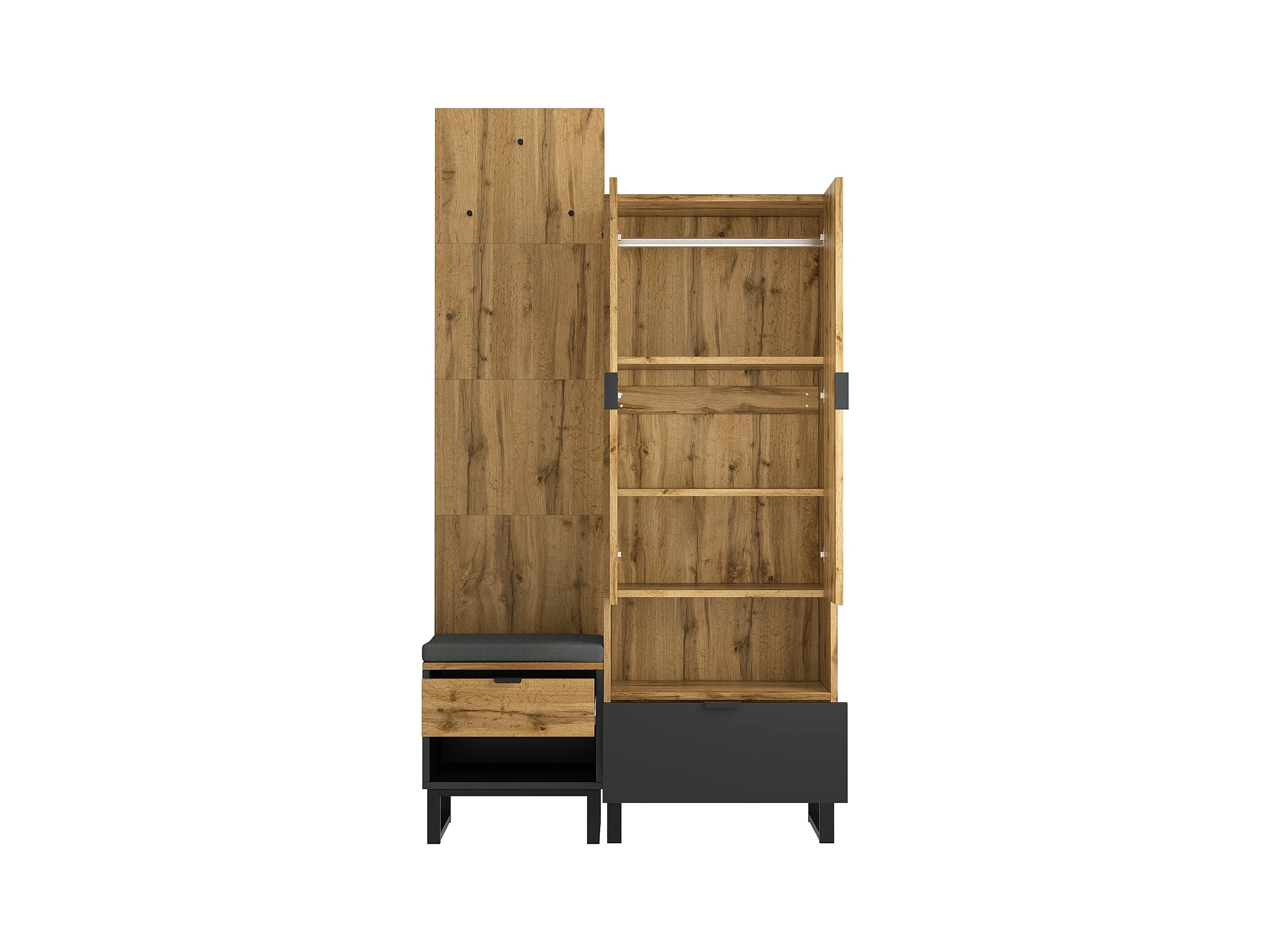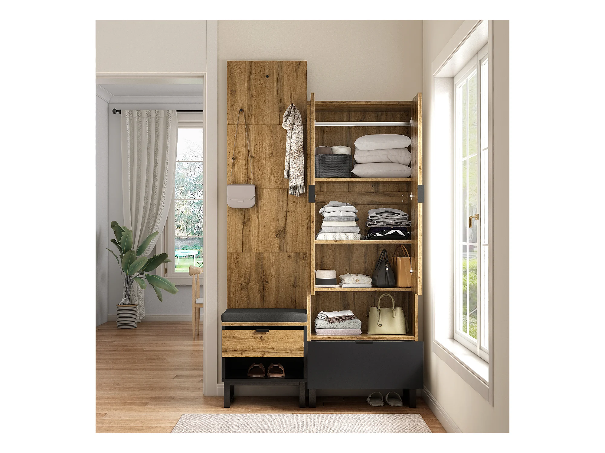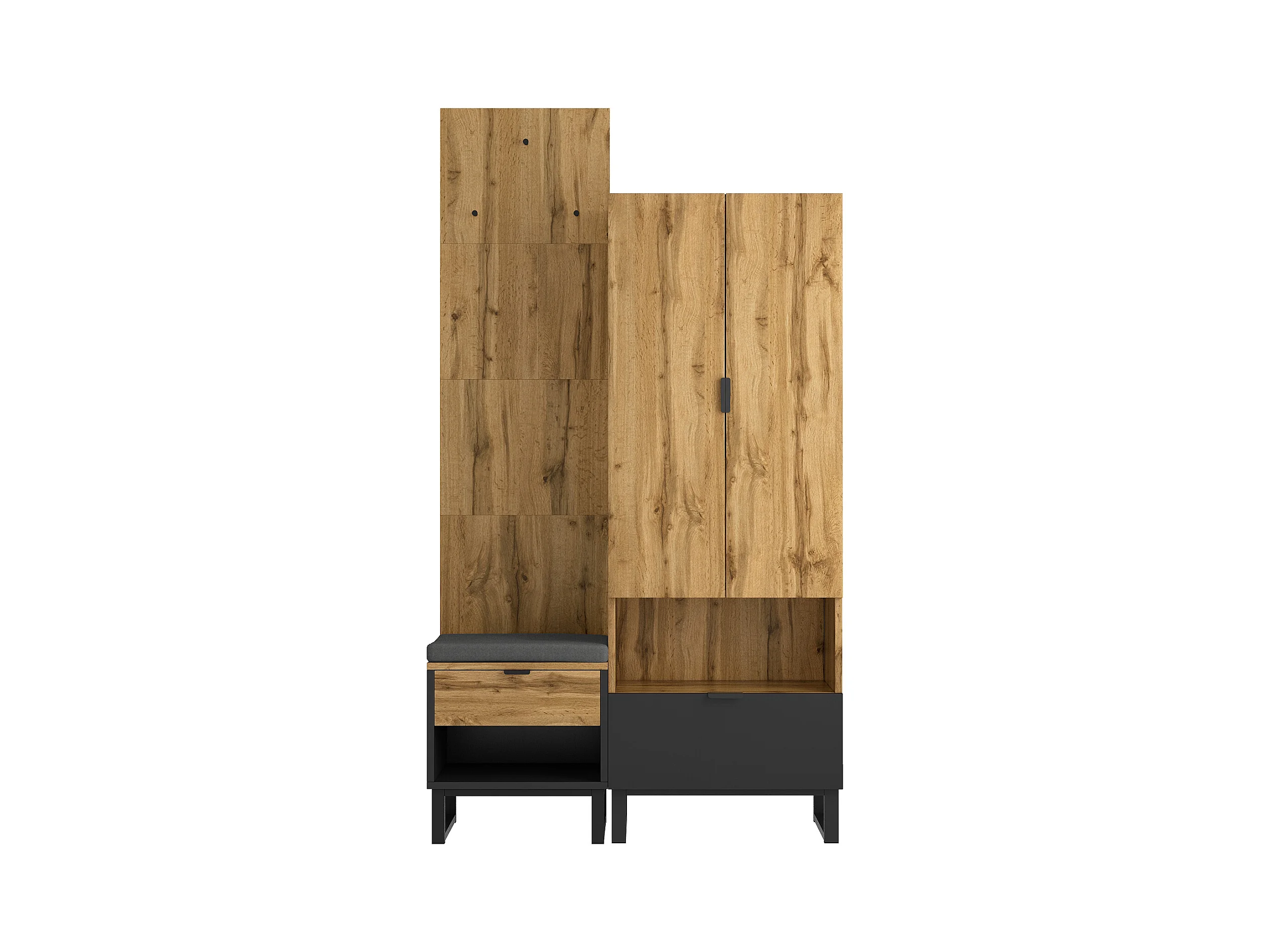Zestaw wieszakowy do przedpokoju 100x38.5x190.5 cm - z hakami - 2 drzwi - Regulowane półki - Naturalny