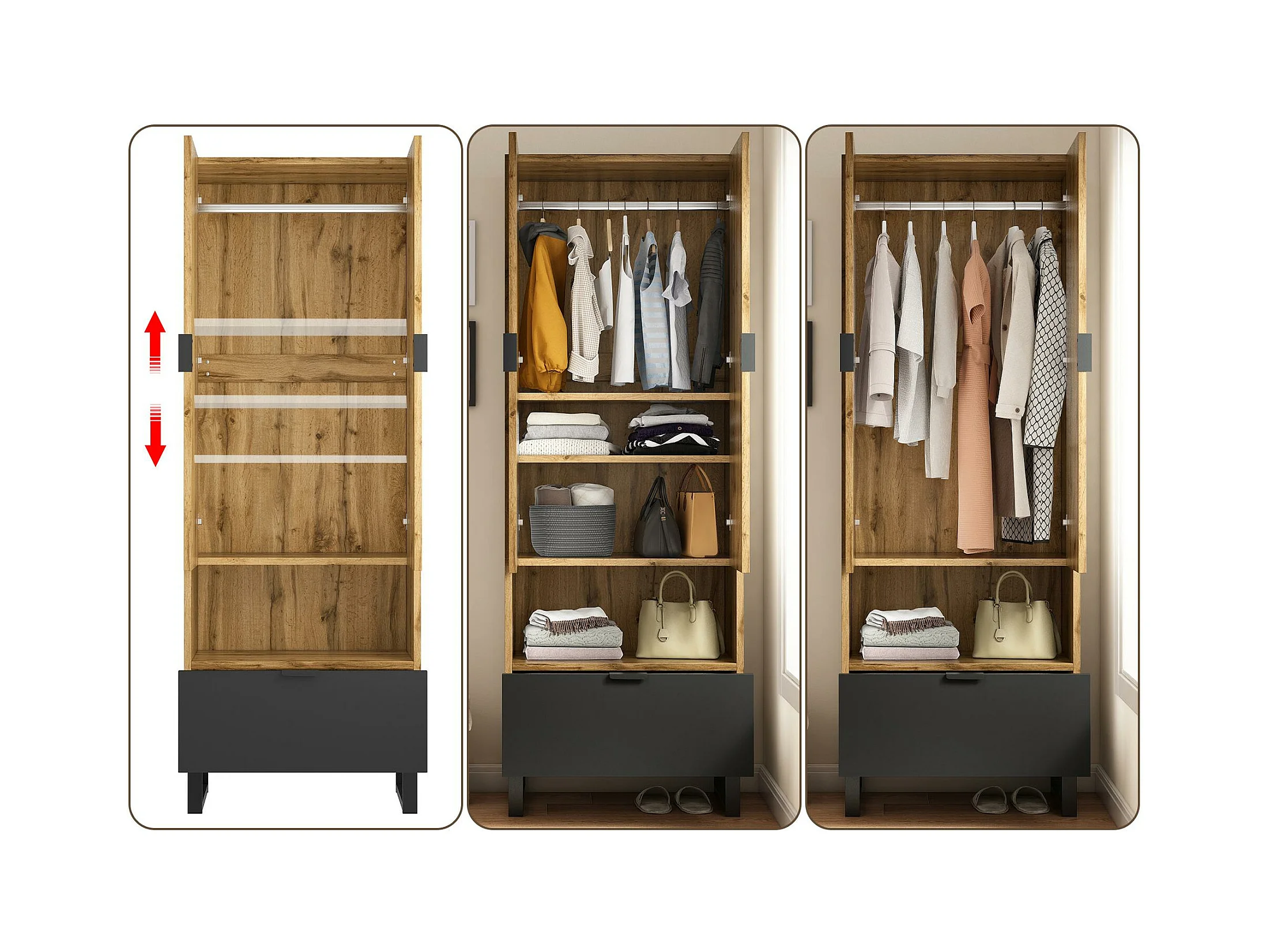 Wieszak z szufladą i przegrodą - z drążkiem na ubrania - Naturalny