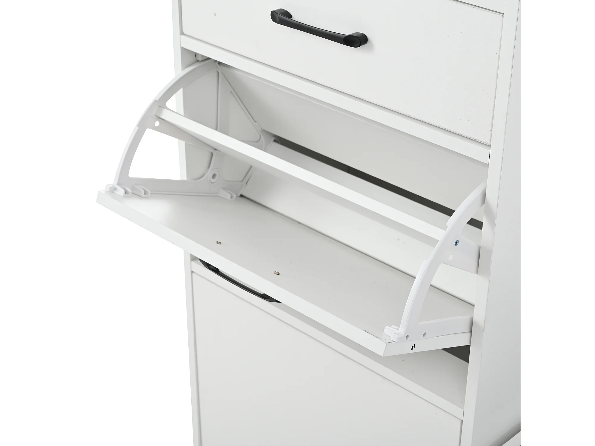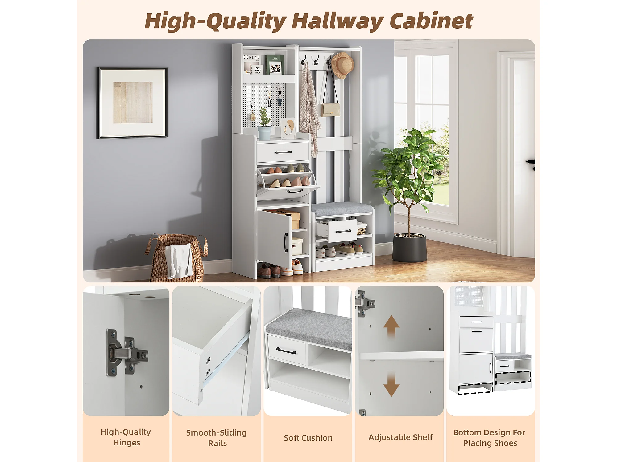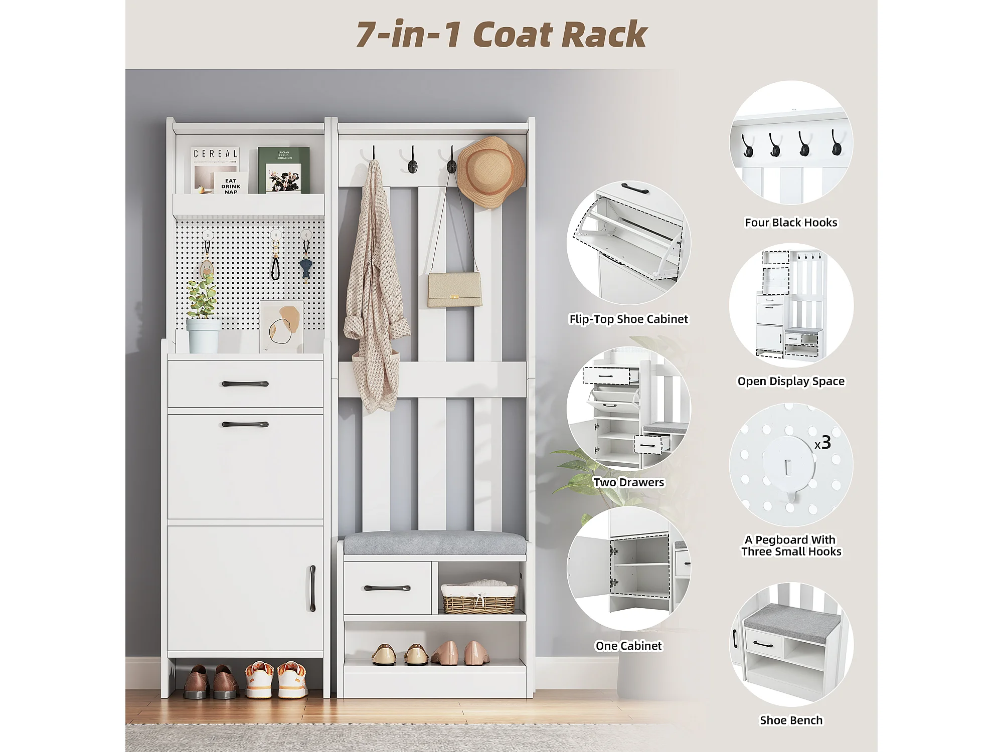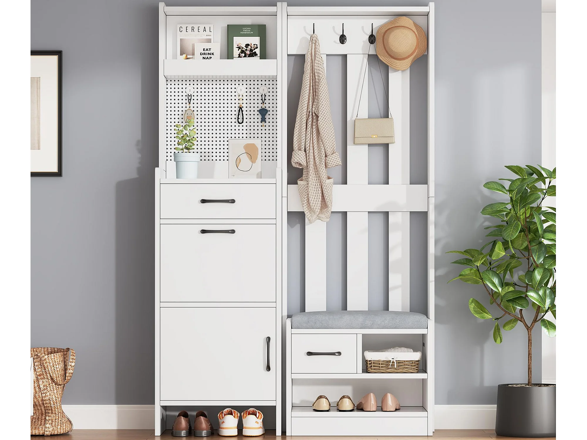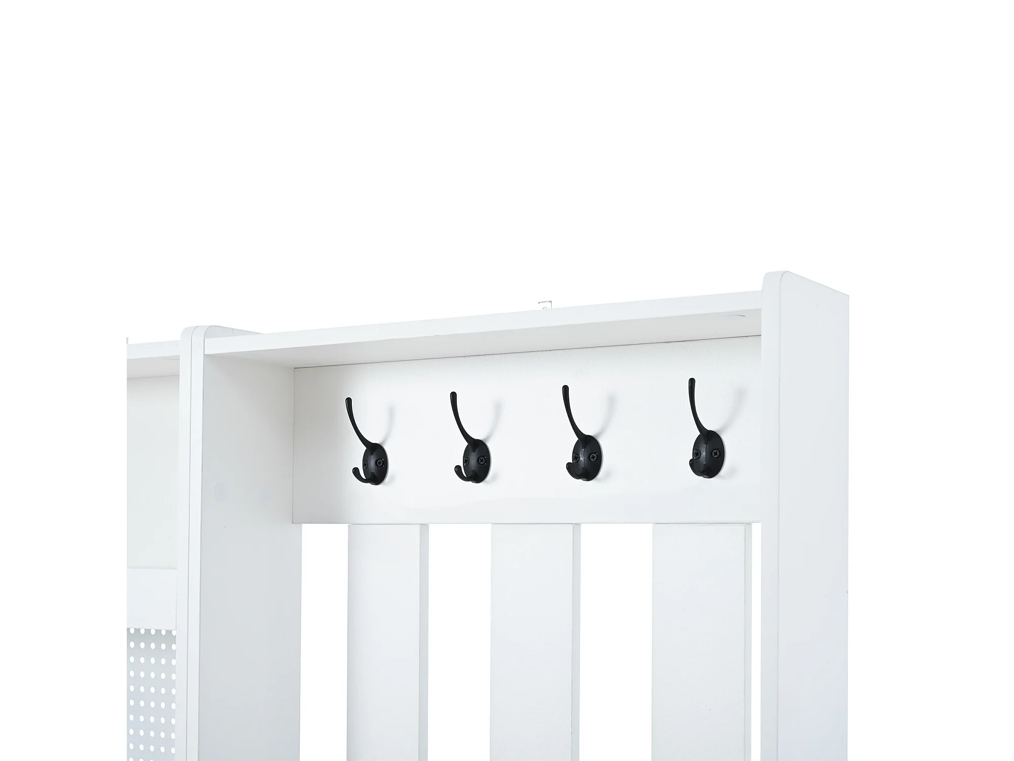 Zestaw wieszakowy do przedpokoju 110x35x175.5 cm - Szafa na buty i ławka na buty - haki i panel perforowany - Biały