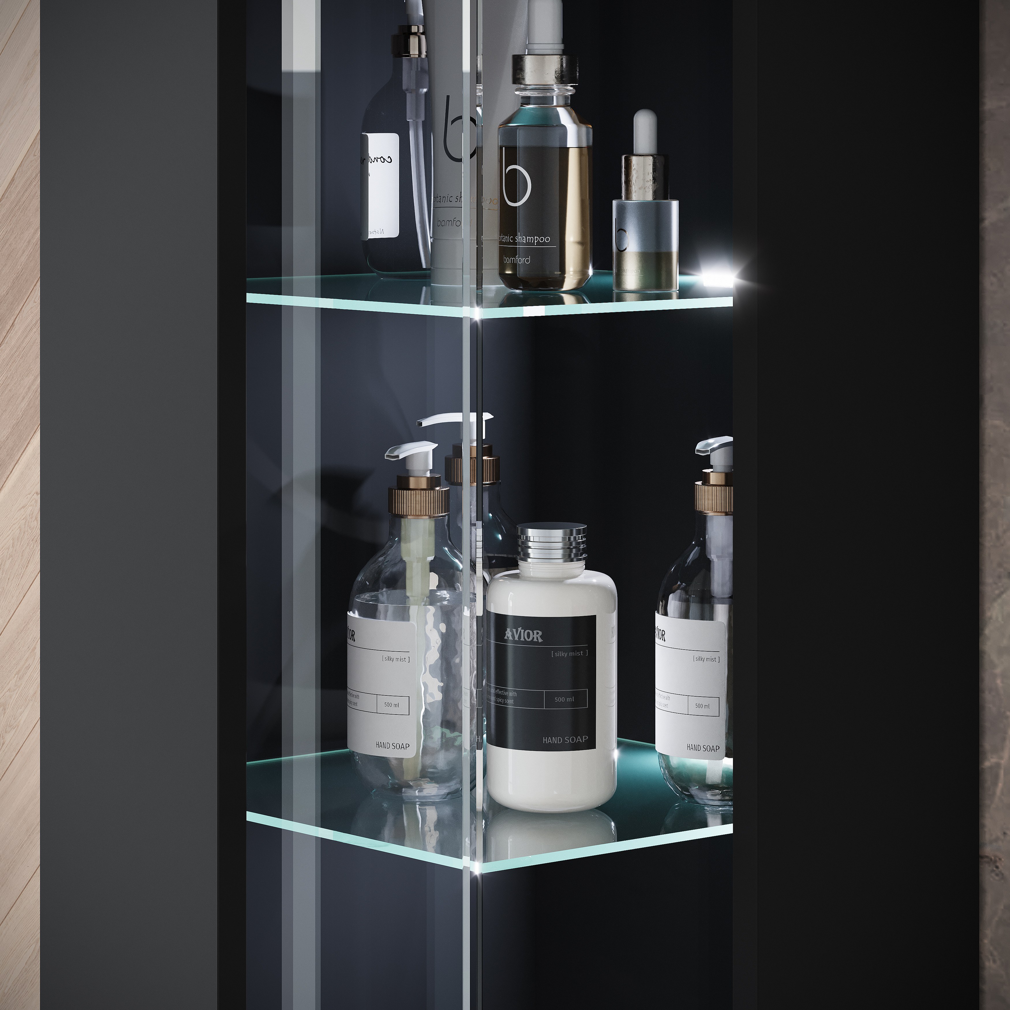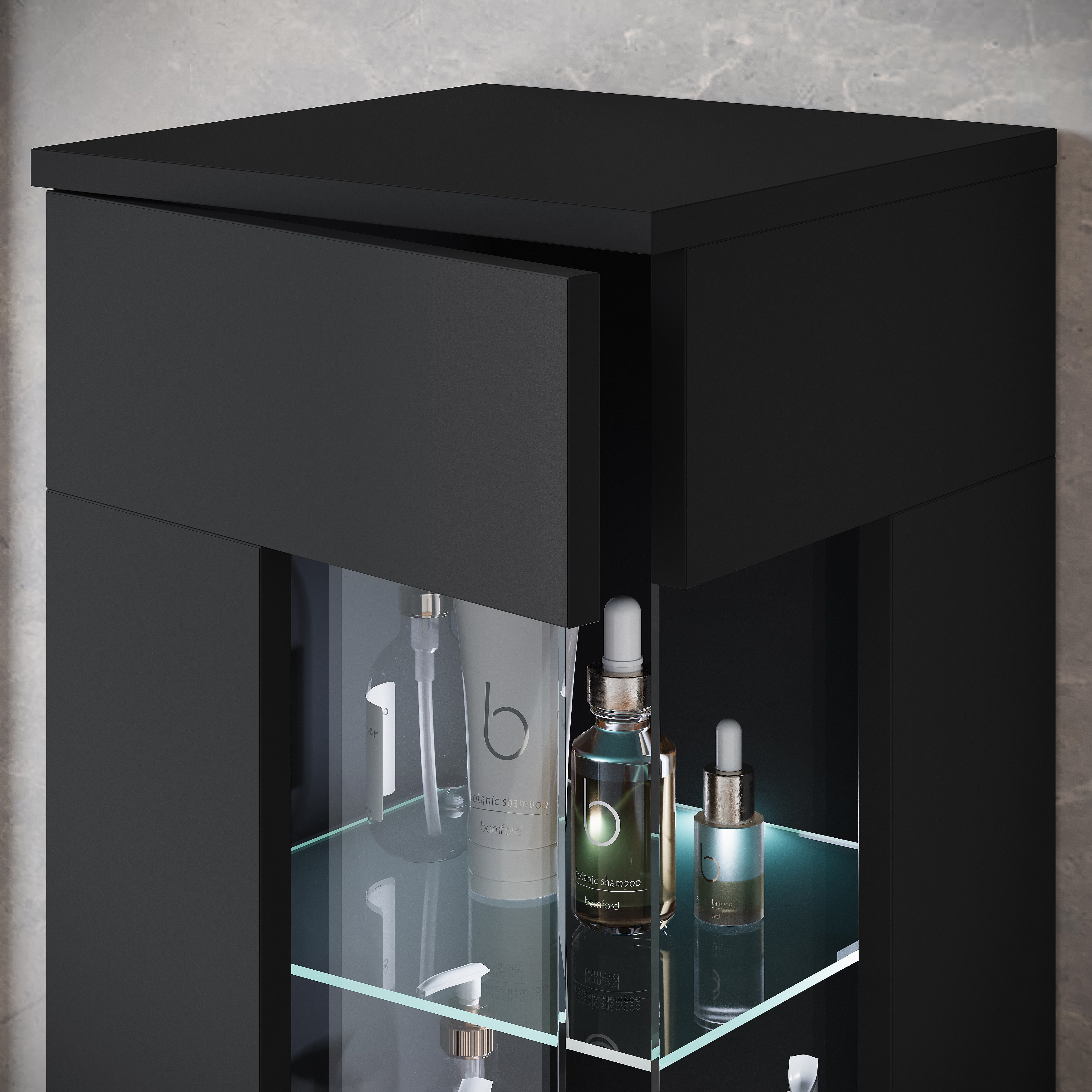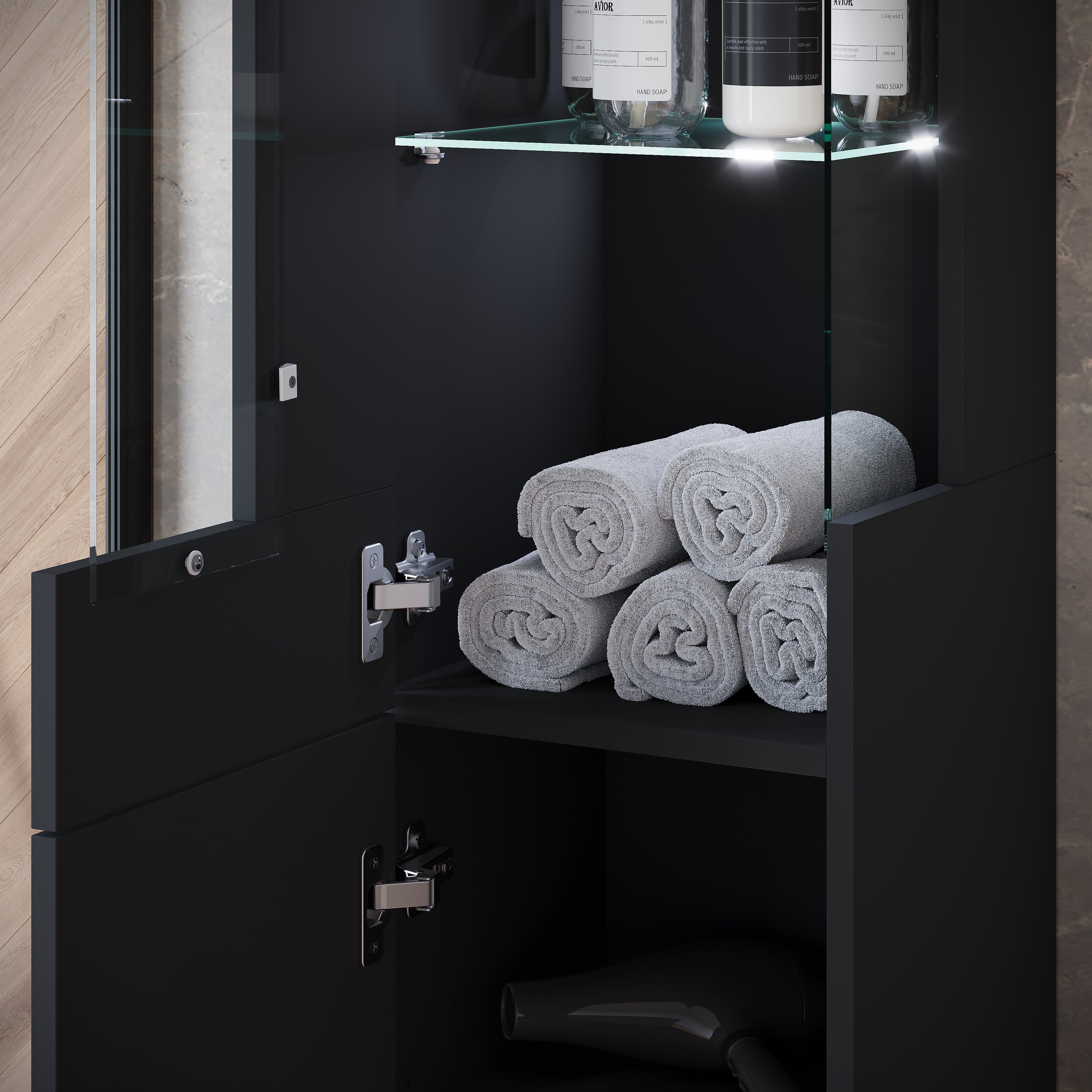 Zestaw Łazienkowy 60cm Ryflowane Fronty Czarny Amy Słupek Szafka z Lustrem