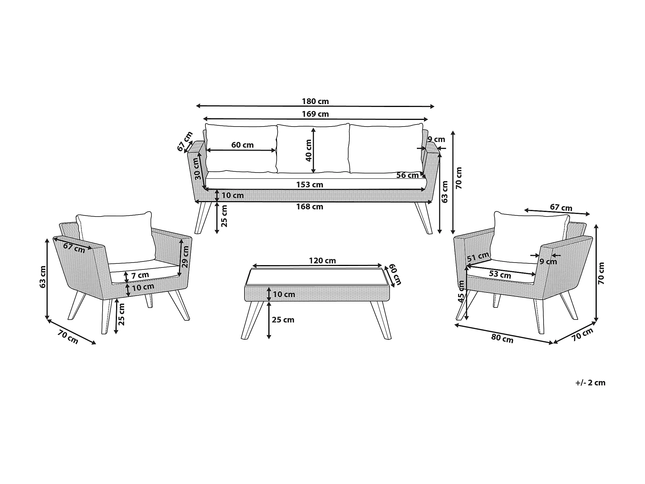 Zestaw ogrodowy dla 4 osób ARDEA Rattan Jasnobrązowy