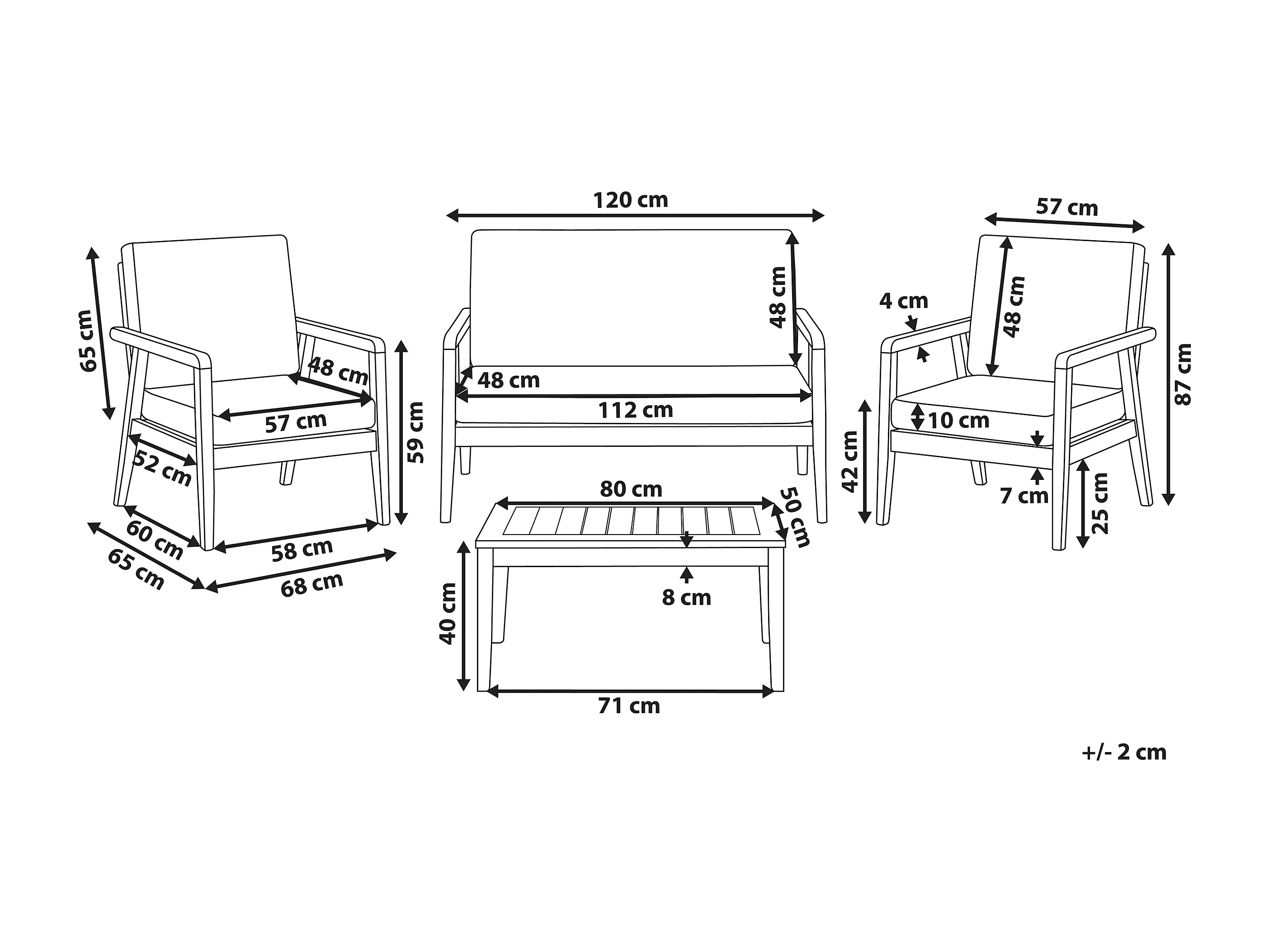 Zestaw ogrodowy ze stolikiem dla 4 osób PALLANO Drewno akacjowe Ciemnoszary