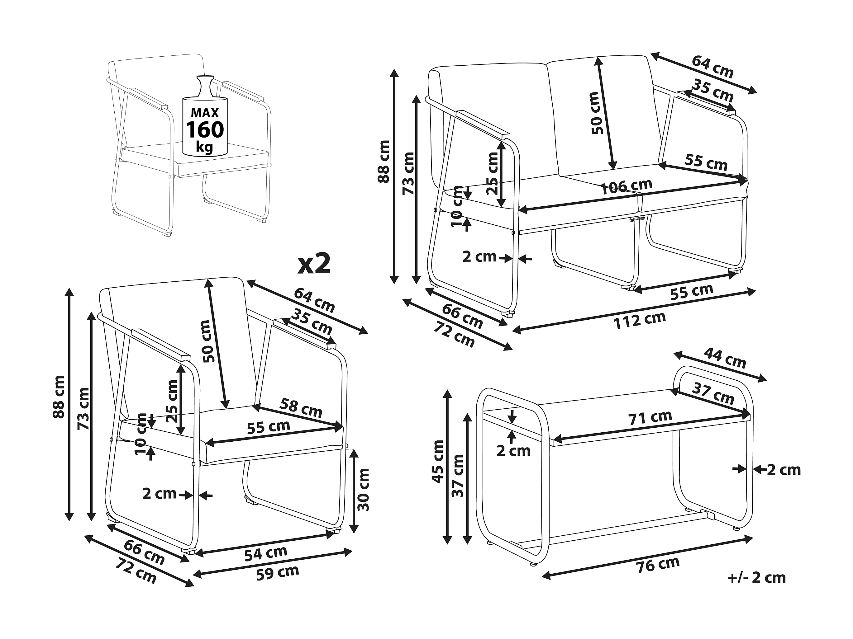 Zestaw ogrodowy ze stolikiem dla 4 osób VEZZANA Metal Jasnobeżowy