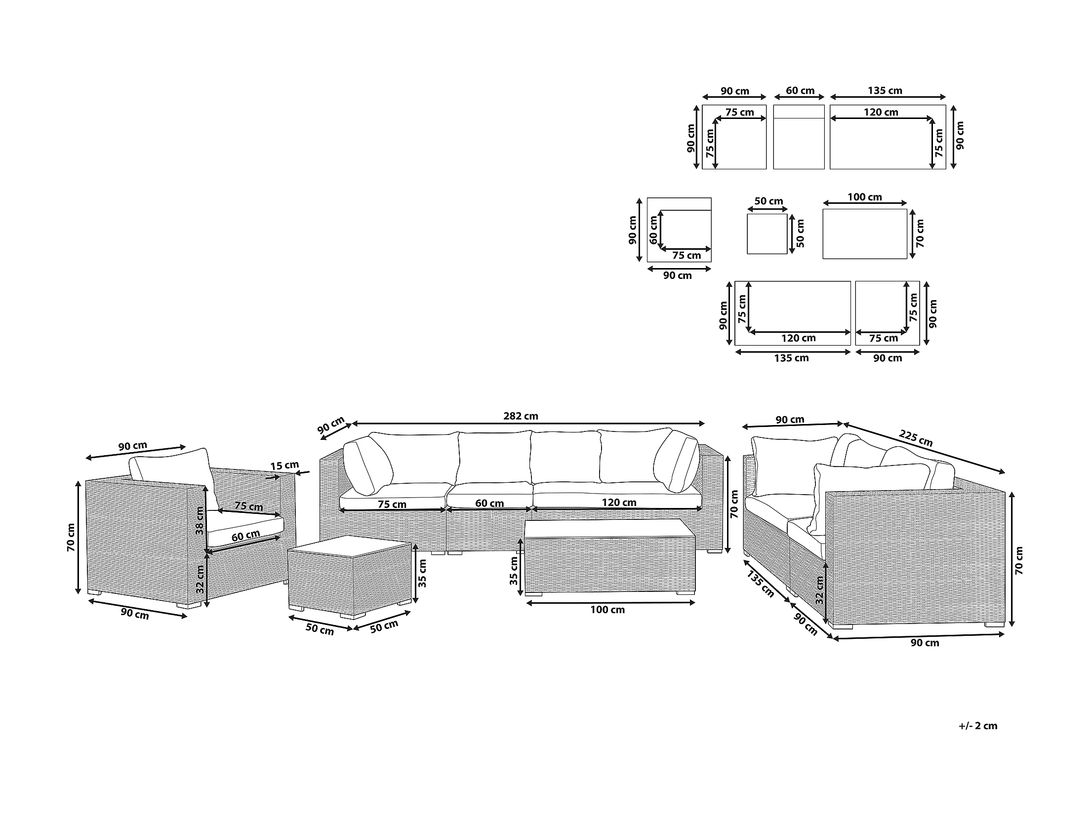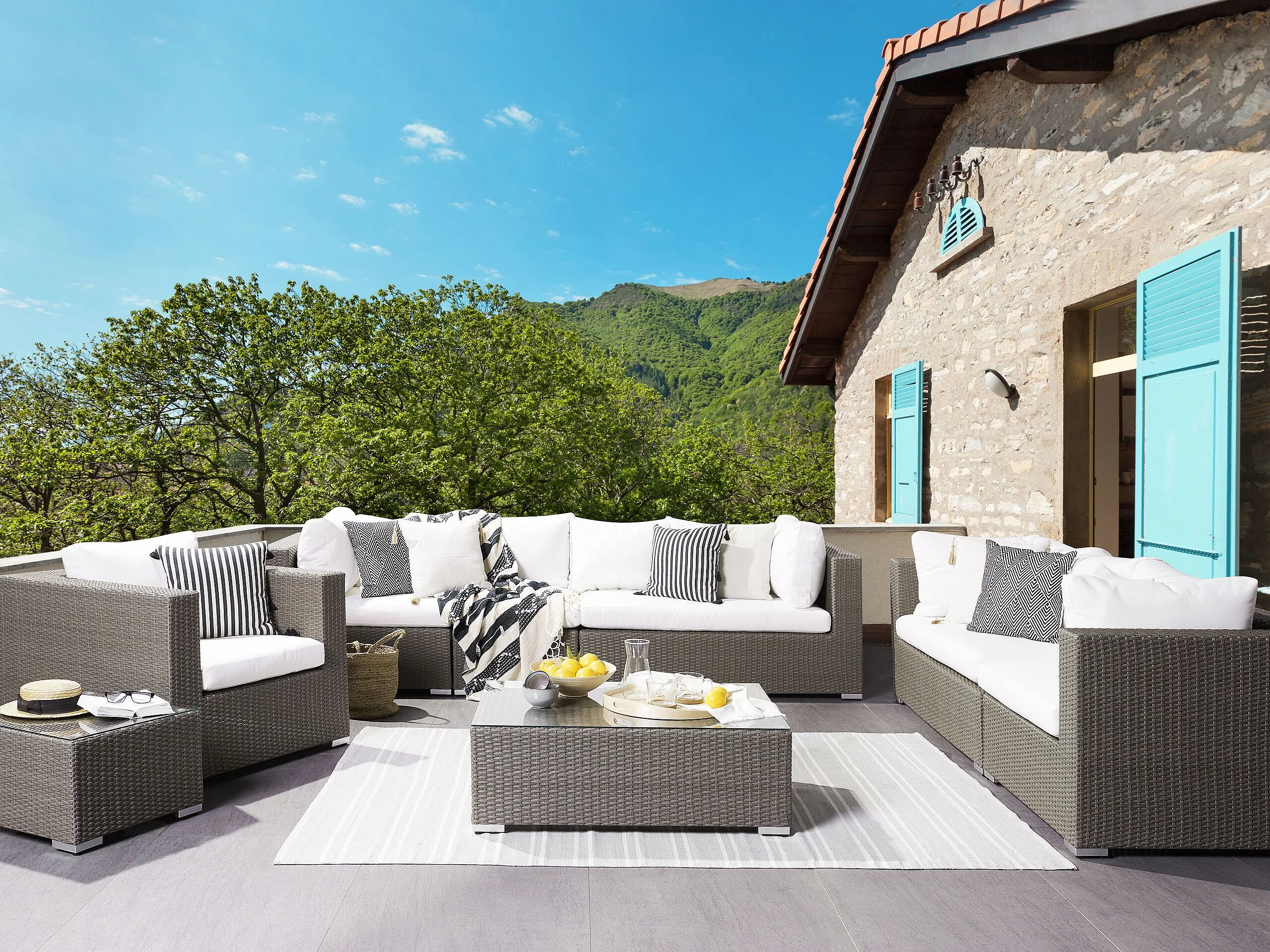 Zestaw ogrodowy ze stolikiem dla 8 osób MAESTRO Modułowy Technorattan Beżowoszary
