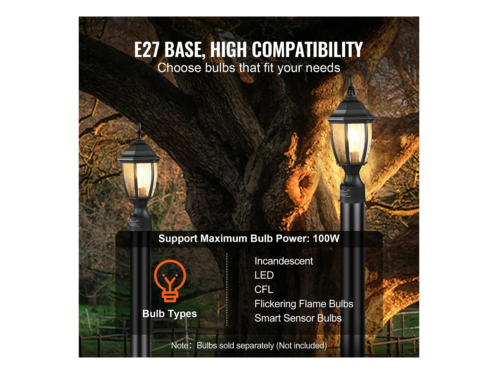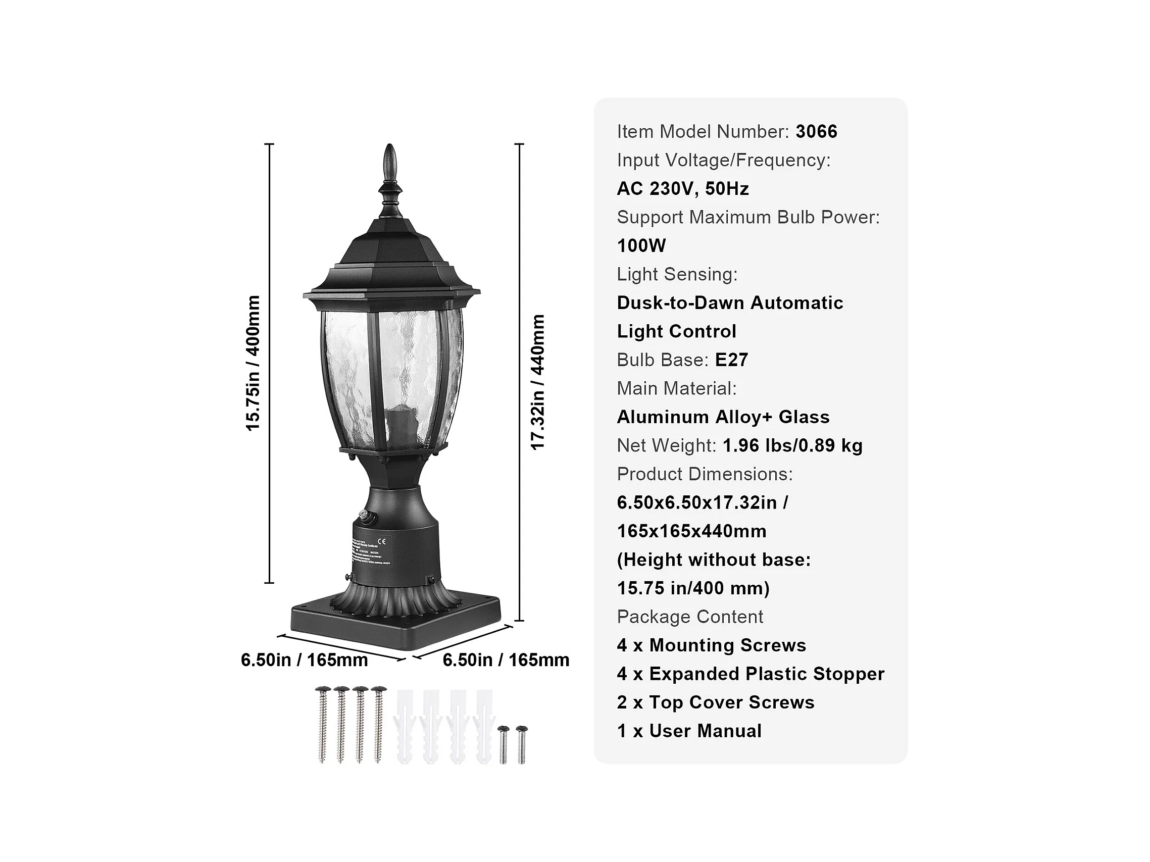 Zewnętrzna Lampa Podłogowa SucceBuy, 40 cm, od Zmierzchu do Świtu, Wodoodporne Oprawy Oświetleniowe do Latarni