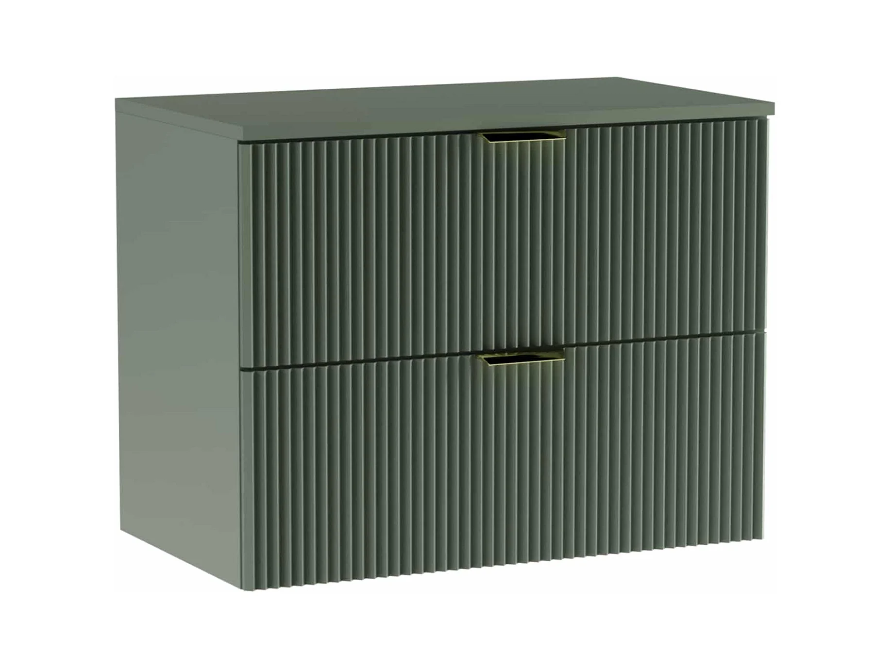 Zielony Zestaw Łazienkowy 100cm Szafka Blat Regał Orzech Słupek Ryflowane Fronty