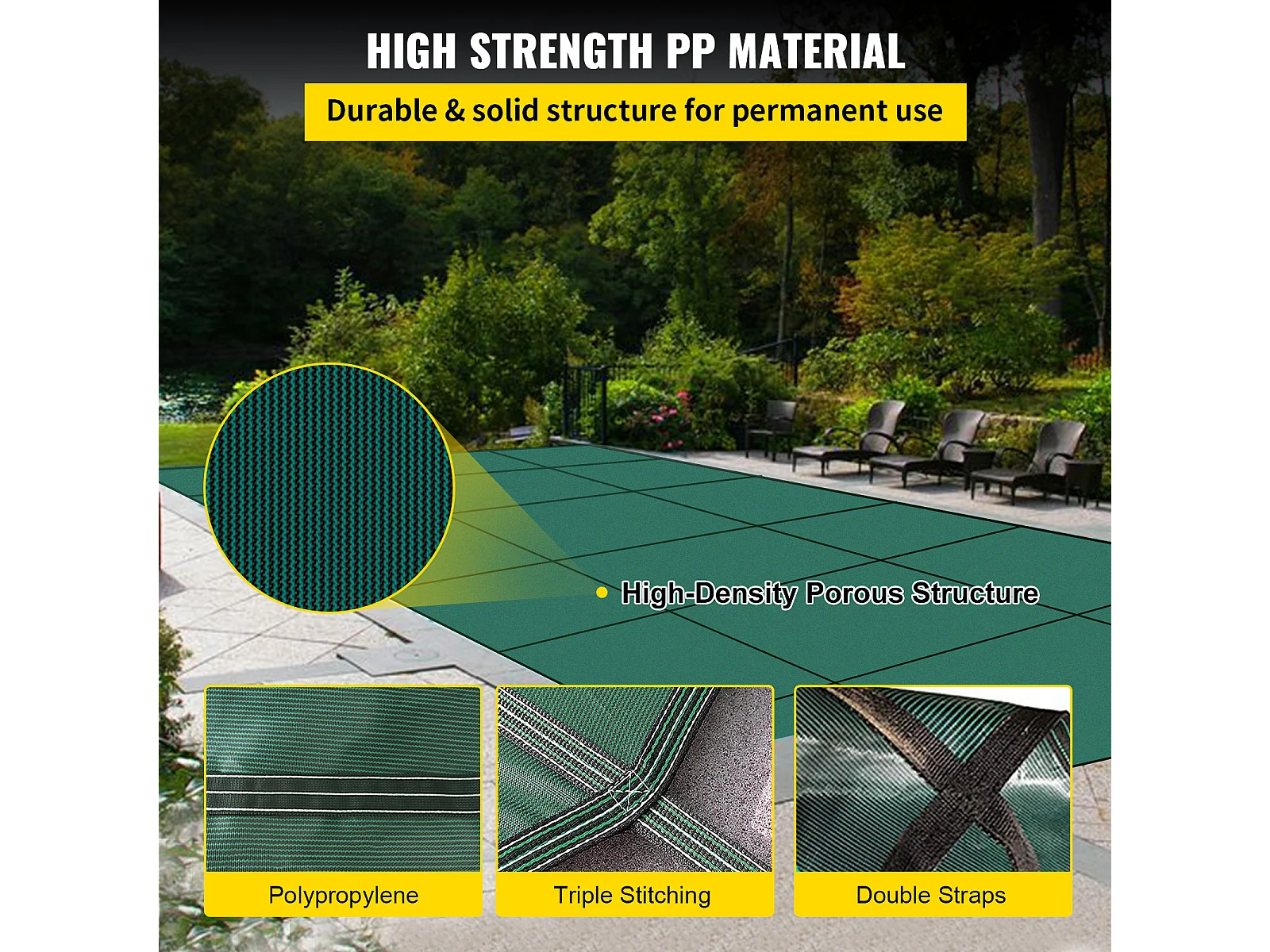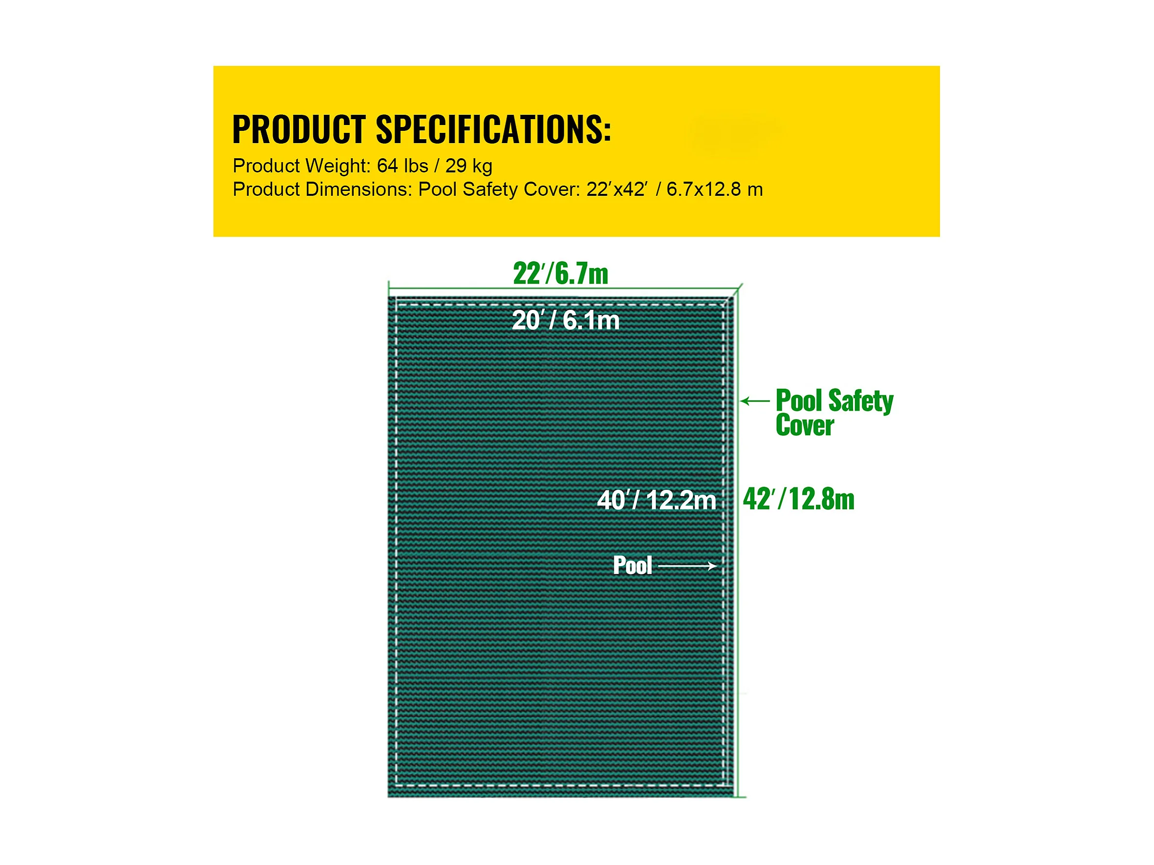 Zimowa Osłona Basenu, SucceBuy 610 X 1220 Cm Zielona Prostokątna Siatka Bezpieczeństwa Do Użytku Na Zewnątrz Zimą
