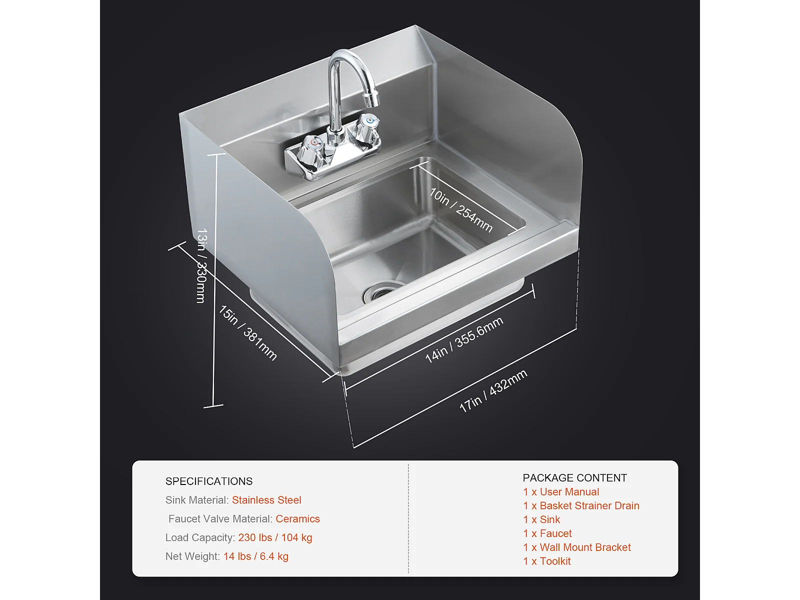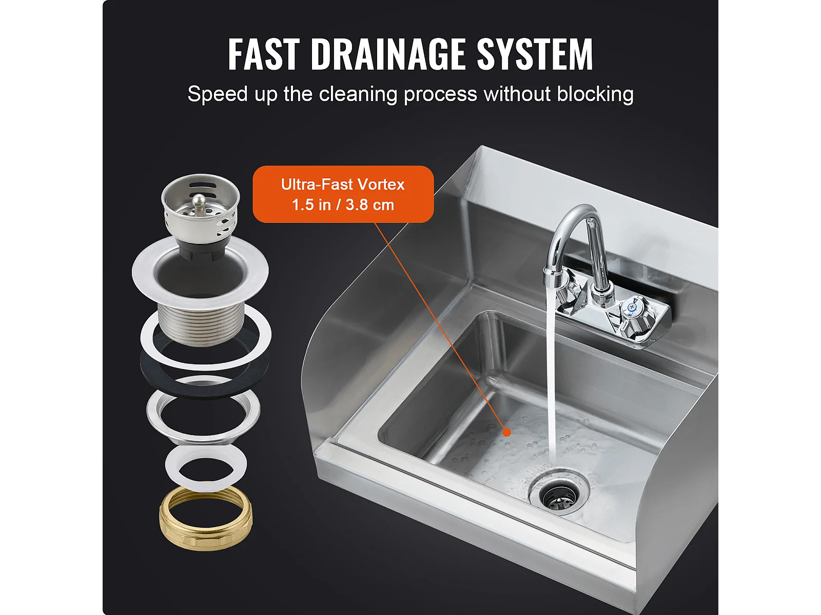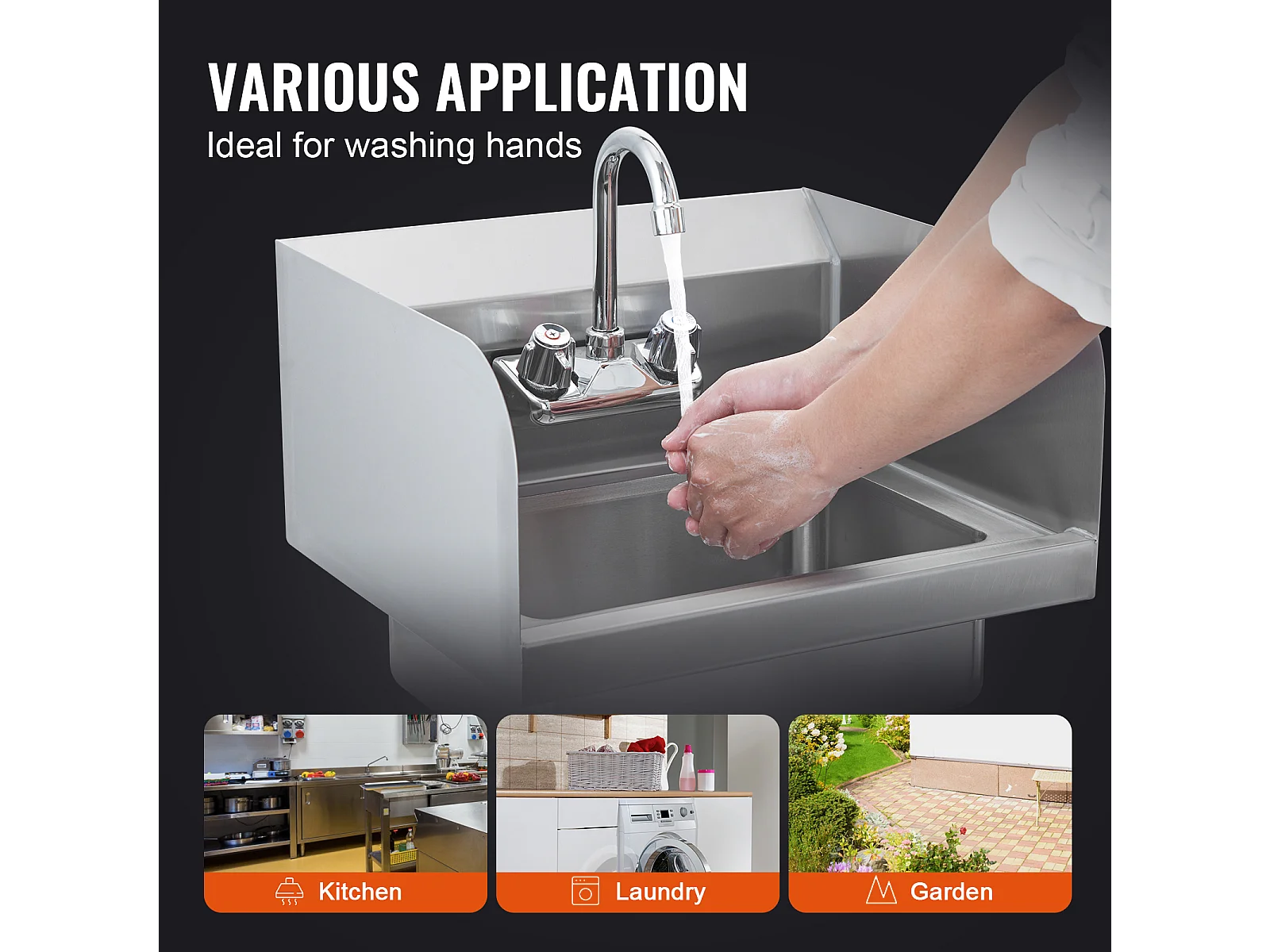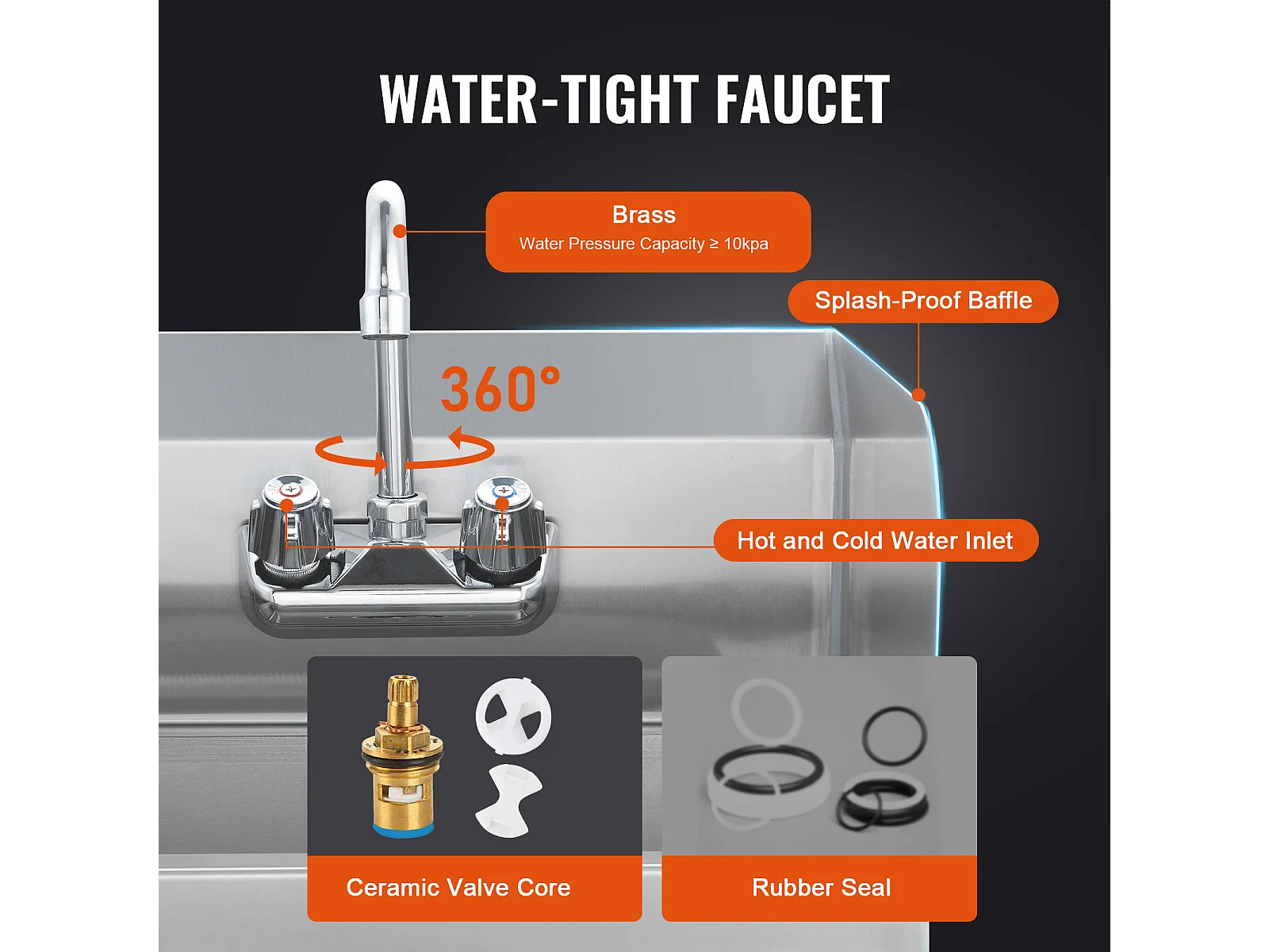 Bateria Kuchenna, SucceBuy Komercyjna Bateria Ścienna do Zlewu Kuchennego - Ze Spryskiwaczem do Wstępnego Płukania, 91 cm