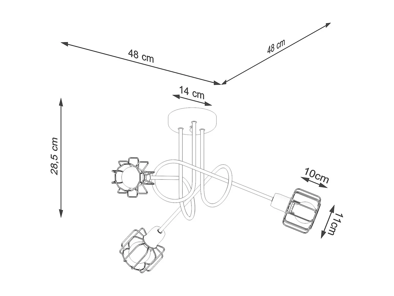 Żyrandole nowoczesny Celubi, stal - 3 źródło światła 4000K - L.48 x H.28.5 cm - czarny